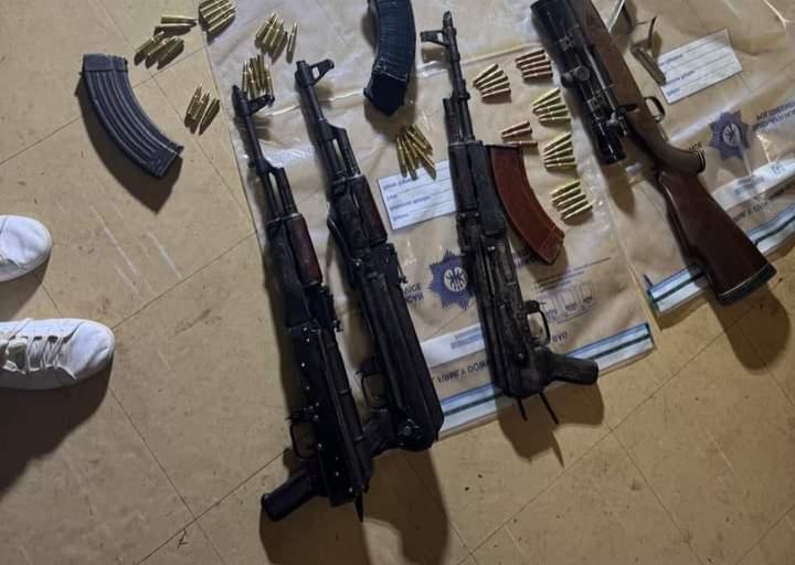 Phakathi kwezibhamu ezivundululwe amaphoyisa kubalwa ama-AK47 automatic rifles amathathu ne-243 Steyr Mannlicher rifle.