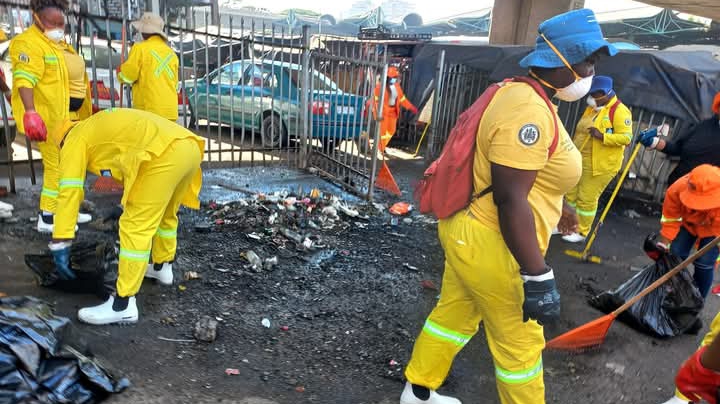 Abasebenzi bezinhlaka ezahlukene kuMasipala weTheku bavuke bagcwala umgwaqo nemishanelo noplastiki abamnyama.